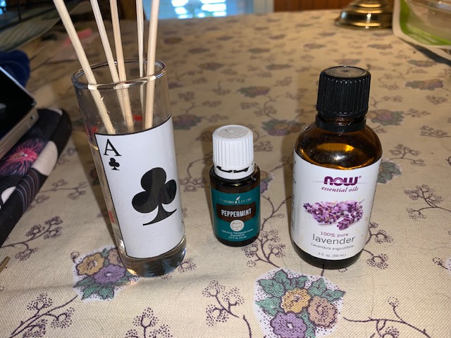 This is how it works. I was cleaning and looking for a small jar to put reed diffuser sticks in. I couldn’t find one so kept cleaning. While doing dishes, I remembered the card glasses I bought at Goodwill that were sitting under the TV. I went and got them and unwrapped them all to wash and found only one little tall shot glass that would be perfect for my reed diffuser. AND it was the Ace of Clubs which is the same as the Ace of Wands in Tarot. A wonderful card which brings in the promise of creative inspiration that will develop through the activity of creative expression. (i.e., inspired to get glasses, and followed through by actually getting them).