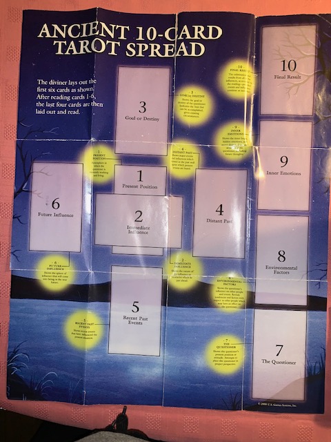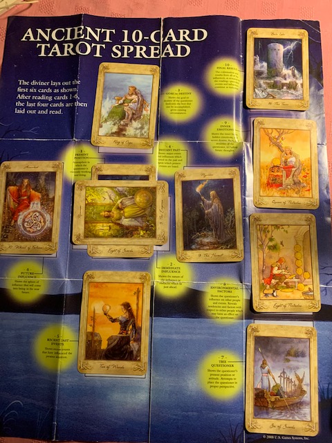 The Celtic Cross is like a snapshot of your energy momentum from past to present to future including influencing emotions, events, environmental factors, and goals. And it can deduce a final result based on all of the cards. I just did my own Celtic Cross reading and every time I turned a card over, I kept saying “wow” because it was so accurate. It provided information about how I am feeling that I wasn’t aware of, and provided a snapshot of where I am headed. In this reading, I am very pleased with my outcome. This is a great spread for people who want a reading, but don’t really know what to ask. The cards will do it for you.